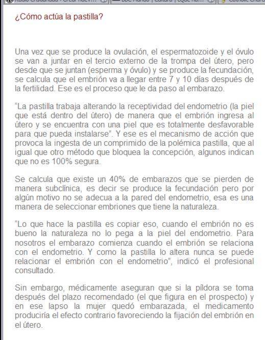Yo estoy en desacuerdo con el articulo, la pildora del dia despues NO es abortiva, ya ke EVITA el embarazo, y NO LO INTERRUMPE (lo que vendria a ser un aborto)