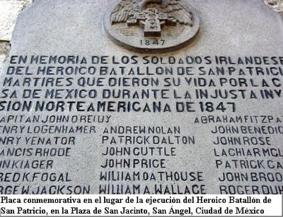 Visto friamente, la historia del batallon de S. Patricio es vergonzosa tanto para USA como para Mexico, tan es así que la pelicula Heroes o traidores protagonizada por Tom Berenger donde se trata mas o menos a la manera Holywoodense la verdad historica, fué boicoteada en los dos paises, y condenada al ostracismo, porque la verdad no ofende pero incomoda, fué muy triste ver en la ciudad de Mexico pasar sus ultimos años a unos cuantos soldados Irlandeses que lucharon por conservar la independencia Mexicana, vivir pidiendo limosna para no morir de hambre.
