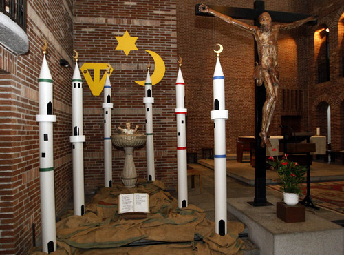 En una iglesia suiza el Niño Jesús está rodeado por seis minaretes