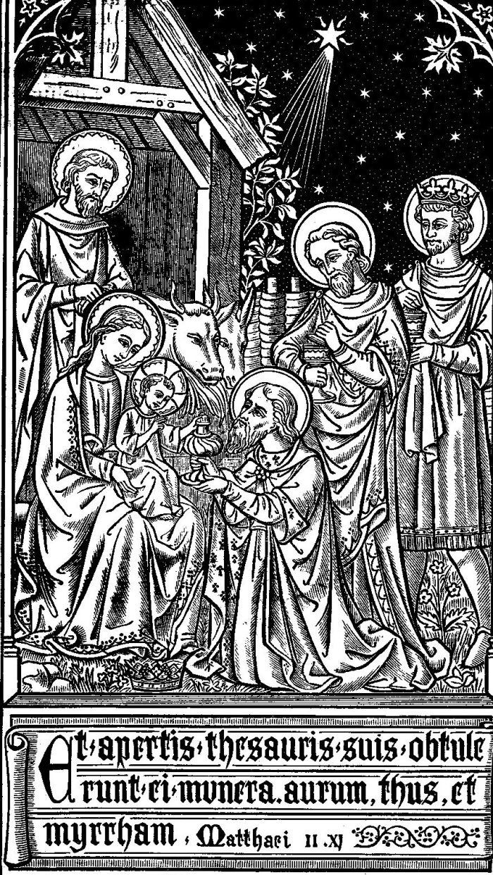 Y postrándose, le adoraron; abrieron luego sus cofres y le ofrecieron dones de oro, incienso y mirra.