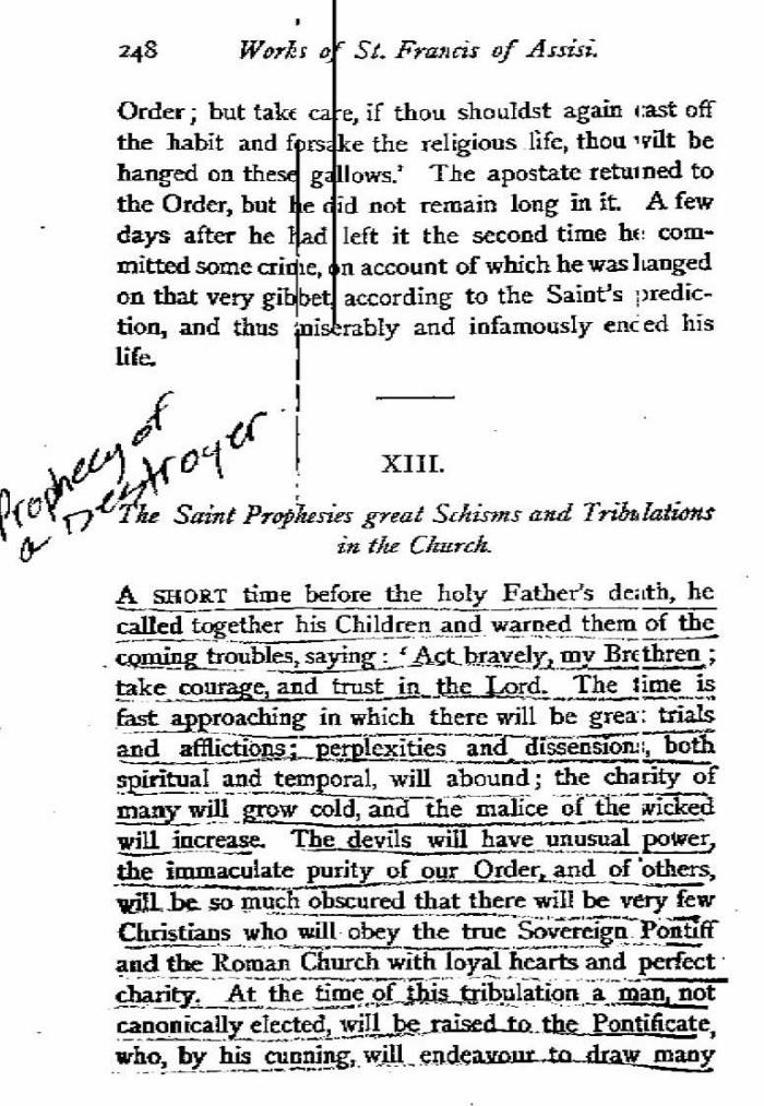 San Francisco de Asís ya conocía el estado de Sede Vacante en la Iglesia, según se desprende de esta profecía: