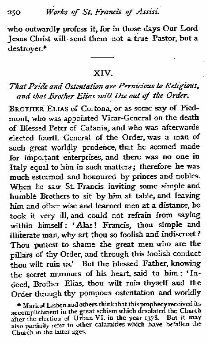Excepto por dividirse el relato en apartados, y añadiendo negrita para ciertos énfasis, la profecía se presenta sin ninguna alteración, tal como figura en las Obras del Seráfico Padre San Francisco de Asís, Washbourne, 1882, páginas 248-250; como lo demuestran las páginas escaneadas adjuntas.