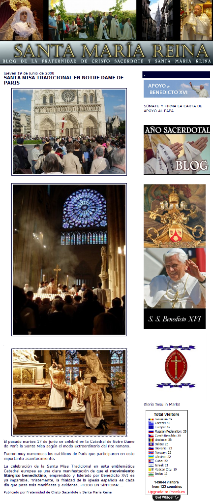 Pues bien, el blog de la Fraternidad de Cristo Sacerdote y Santa María Reina publicó en su 12ª entrada de la edición de junio de 2008 la siguiente noticia:
