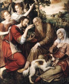 Los demás le dijeron que no tenían inconvenientes en apostar, más que estuviese enteramente seguro de que nada iba a recibir, antes bien sería rechazado; no habiendo dado nunca nada, no querría empezar entonces a desprenderse de algo. Mientras le aguardaban juntos, fuése aquél a encontrar al rico y con gran humildad le pidió quisiese darle algo en nombre de Jesucristo. El rico se enfureció de tal manera, y no hallando a mano ninguna piedra para echársela encima, y viendo a su criado que venía de casa el panadero a hacer provisión de pan para sus perros, tomó un pan con gran furia y se lo arrojó por la cabeza. El pobre, con el ánimo de ganar la apuesta hecha con sus compañeros, corrió con gran presteza a recogerlo y lo llevó a sus camaradas como prueba de que aquel rico le había dado una buena limosna.