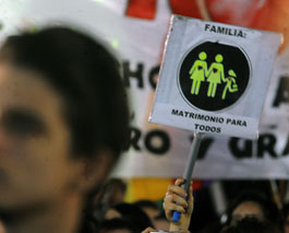 «Esta convocatoria demuestra el consenso popular que hay para la aprobación de la ley del casamiento de todas y todas», dijo María Rachid, de la Federación Gays, Lesbianas, Bisexuales y Trans (LGBT), al constatar la concurrencia.
