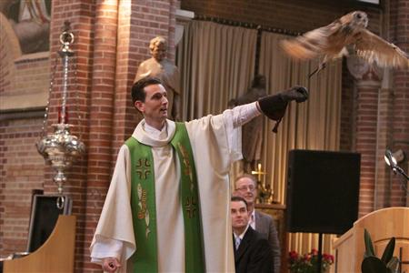 El sacerdote que presidió esta misa (por el plantel holandés) durante la Copa Mundial, ha sido suspendido. En la misa de San Huberto (patrono de los cazadores), en el 2009, fue atacado por activistas de los derechos de los animales durante el servicio. La iglesia completa estaba decorada con alusiones a la caza, como un gavilán; el presbítero, asimismo, lanzó un búho durante la misa, y había perros de caza entre la feligresía. La misma vieja historia de la fauna invadiendo el templo, en vez de ser bendecida en el exterior del mismo. (Traducción y notas de Radio Cristiandad)