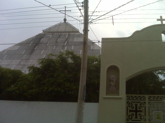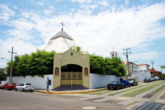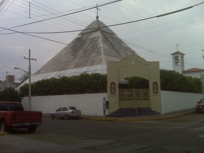 No puedo creer que un sacerdote u obispo asi mismo su pueblo haya permitido la creacion de un templo cuasi pagano, pues aunque la cruz este rematando la cuspide de la piramide, es algo inaceptable, por un lado el simbolo masonico es totalmente claro, y se me hace extrano, que en la parte de atras se vea la torre de una parroquia catolica un poco mas tradicional, asi pues, si quisieron ser originales, cayeron en lo heretico, y si quisieron demostrar su modernismo lo lograron, como dice el dicho, «la imagen, dice mas que mil palabras»