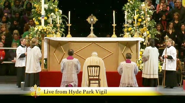 Nuevamente, bellas chicas como «acólitos» de Benedicto XVI. Esta vez en la Vigilia en Hyde Park.
