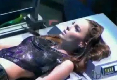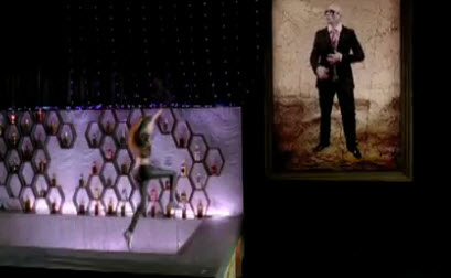 A continuación, se levanta de un modo mecánico, robótico; y comienza su interpretación con un montón de medio-humanos/medio-robots bailando a su alrededor. Todo el tema del transhumanismo es de necesidad para los artistas Illuminati.