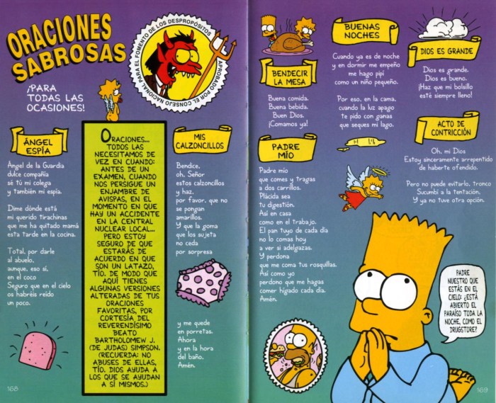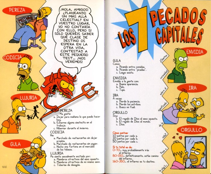 Me parece terrible que la Santa Sede este recomendando a los fieles Catolicos ver este programa tan vulgar y bajo ………..y en compania de ninos !! Para aprender que ? a ser perezosos, mediocres, toma trago y a eructar como lo hace Homero Simpson? a hacer todo tipo de trampas como Bart y su mediocre padre hacen? a promover la avaricia y falta de caridad como lo promueven todos los personajes de ese programa (excepto quizas por Lisa la hermana)? a estar interesados en lo bajo, en lo soez? Ese programa promueve todos los pecados capitales, de los cuales Homero Simpson es un fiel exponente. Adicionalmente lanzan una que otra blasfemia de tanto en tanto.