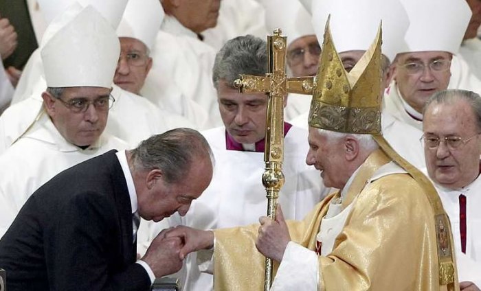 Vale la pena notar el simulacro de beso al anillo hecho por el impío Juan Carlos… parece que los besos simulados son una moda contagiosa (ver aquí)
