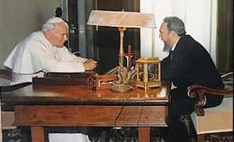 De la recepción brindada al dictador Castro en Roma, en 1996, y del posterior viaje de Juan Pablo II a Cuba, en 1998, mucho se podría comentar, y de hecho se comentó, del punto de vista de los enormes dividendos publicitarios y diplomáticos obtenidos por el régimen de La Habana. Opto entonces por destacar aquí, del viaje a Cuba, algunos aspectos poco o nada comentados de sus importantes alocuciones. Me baso en el estudio “Cuba comunista después de la visita papal”, editado en 1998 por la Comisión de Estudios Por la Libertad de Cuba, de Miami.