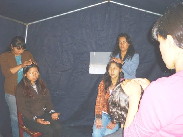 Imposision de las manos lo hace los llamados carismaticos y estas mujeres practicando el reiki hacen lo mismo.