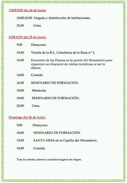 ¿Estará enterada la Santa Sede de este evento denunciado en otros blogs? Lo peor de este escandaloso asunto es que no es la primera vez que se realiza un encuentro masónico en ese monasterio («centro de espiritualidad») de los carmelitas descalzos, como podemos ver en esta noticia de la logia «Caballeros de la Rosa» que tomamos de su sitio:
