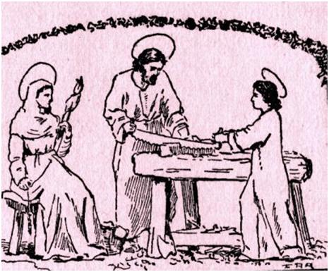 Y José, en la mesa, bendeciría los alimentos y, según la costumbre, sería el primero en partir el pan y beber el vino. Luego, mientras María pone orden en la casa, barre, da de comer a las gallinas, va a la fuente y al mercado, amasa el pan, enciende el horno y hace un bizcocho, los dos carpinteros trabajan en el taller. Cuando vuelvan a mediodía, todo estará a punto.