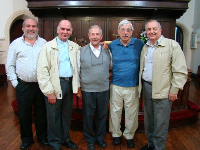 En el centro, el padre Horacio Fasce, delegado diocesano para el ecumenismo; a su izquierda el padre Miguel Blanco y a su derecha, el pastor de la Iglesia Baustista; referentes de la Pastoral de Ecumenismo completan la línea.