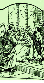Era la hora en que los ancianos del pueblo se reunían en la sala aneja al Templo, para leer y comentar la Sagrada Escritura. José y María entran también en aquella sala, y ¡oh, qué espectáculo se presenta a sus ojos! Ven a muchos doctores de la Ley, dispuestos en círculo, y en medio de ellos, a Jesús, el cual interroga a los doctores, y contesta a lo que éstos le preguntan; y demuestra tanta sabiduría en interrogar y en responder, que todos se quedan asombrados.