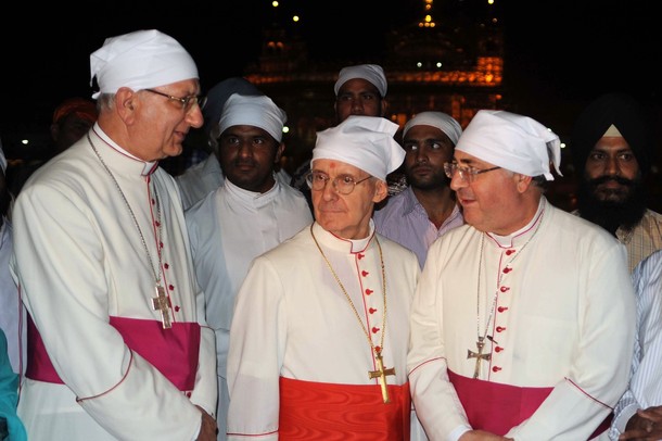 En el cuadro a continuación, hizo en el «templo de oro», el centro mundial de la religión pagana, el sijismo, vemos en el centro de Su Eminencia John Louis Tauran, presidente del Consejo Pontificio para el Diálogo Interreligioso, a la izquierda de él – el arzobispo Pennachio Salvador, Nuncio Apostólico en India, y hacia la derecha – Pedro Luis arzobispo Celata, secretario del consejo papal. Todos ellos están vestidos con un solideo intrincados (al templo no se puede ir sin sombrero, y como la conocemos biretu cuketki y nuestros funcionarios, «ecuménico» no use) y usar pañuelos de color naranja ritual sij. Su Eminencia, a menos que algo más uwaliło frente rozdrapał y la herida, porque la Iglesia Católica se niega a aceptar el pagano frente tilaka, ¿verdad? Hace dos mil años chrześnijanie preferido morir antes que dar el estiércol de vaca para sellar loschamanes paganos …