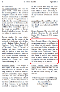 En el boletín de Abril de 2012, pág. 06 (ver detalle en la imagen), de la FSSPX/SSPX en Irlanda se lee: