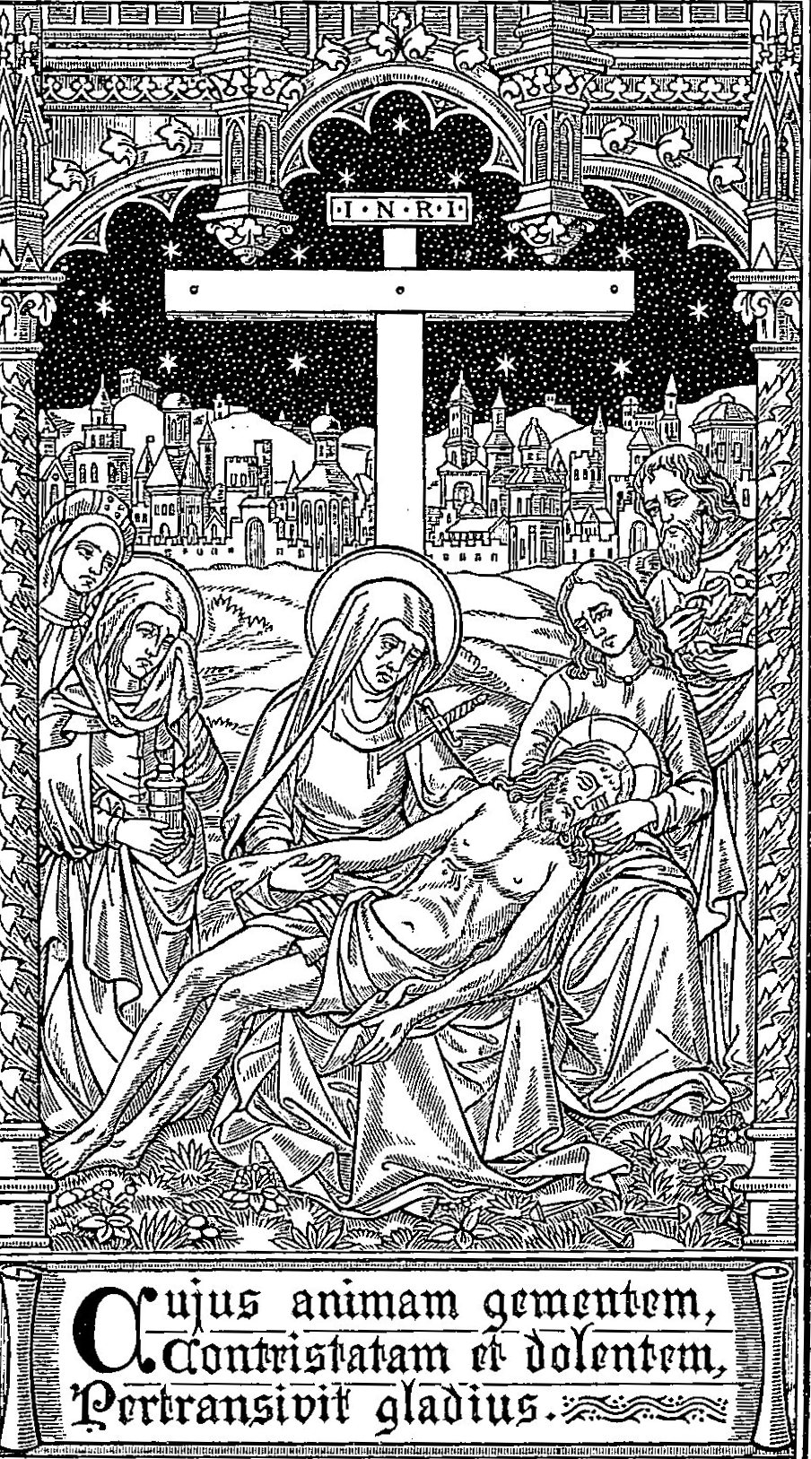 Esto es lo que significa el Stabat del Evangelio: rasgo sencillo, que concuerda con el silencio de la manifestación de la Virgen en todas las otras escenas de la Pasión, y que recibe por ello un valor sublime.