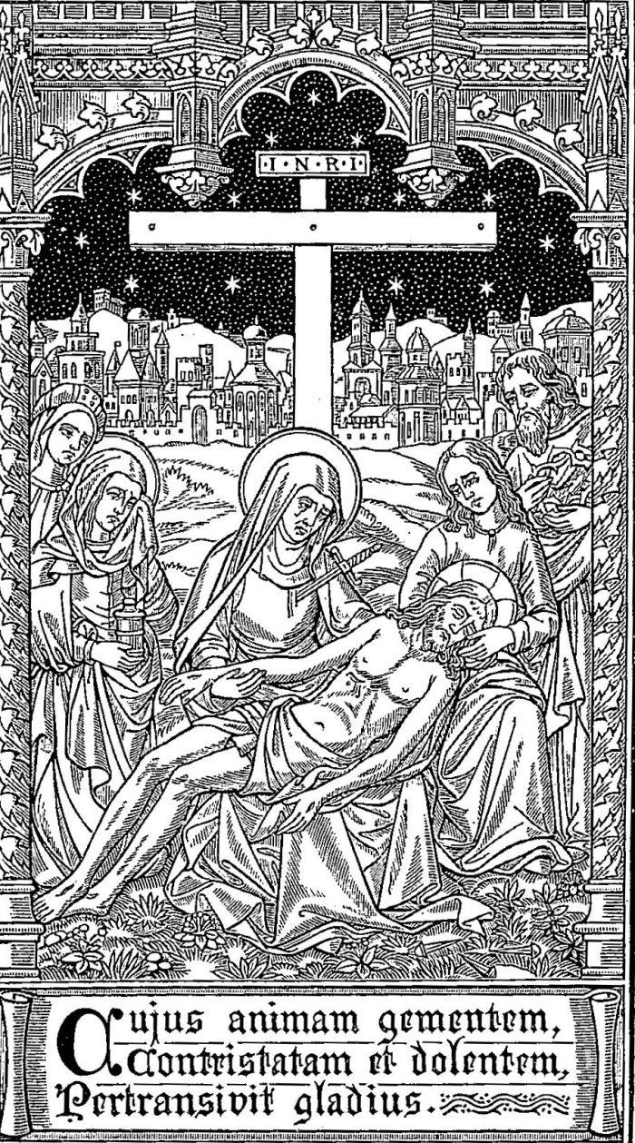 Con gran razón los pintores dan a cada uno de nuestros Mártires el instrumento propio de su suplicio: a San Pablo su espada, a San Lorenzo sus parrillas. Cuando se trata de la Reina de los Mártires, le ponen sobre las rodillas y en los brazos el Cuerpo exánime de su Hijo, como para decirnos que este es su tormento y el instrumento propio de su suplicio.