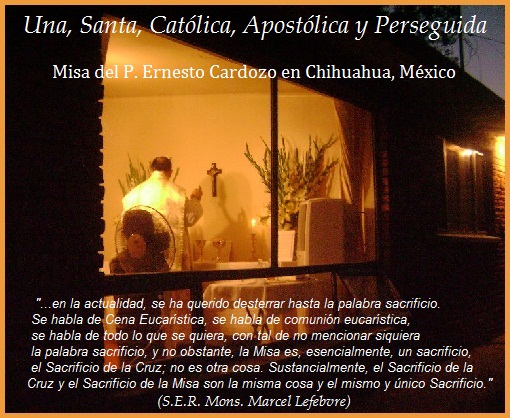 Quien puede proporcionar datos con mayor precisión es la fiel expulsada, Rosa Ivonne Baeza, por abrir las puertas a un sacerdote valiente que se resiste a ver morir la obra de Mgr. Lefebvre y la tradición de la Iglesia. En tiempos de persecución las Misas “se pueden celebrar en cualquier lugar”, y en este caso fue en un hogar, y no en la Capilla hermosa que reconstruyó el mismo Padre Cardozo.