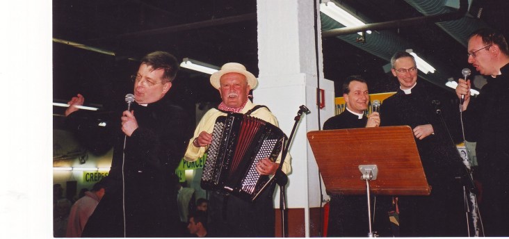 al Padre Bouchacour en plena teatralización, junto al Padre de Tanoüarn (actualmente en el IBP), al Padre Thouvenot (actual Secretario General) y al Padre Thuillier…