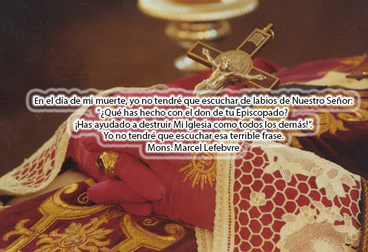 En 1984 Monseñor Lefebvre declaró: “Son ellos los que están equivocados, son ellos los que cambiaron el curso, son ellos los que rompieron con la tradición de la Iglesia, estamos convencidos de esto. Es por eso que no nos unimos a ellos, no podemos trabajar con ellos, no podemos colaborar”… y siguió diciendo lo mismo en en el 85, 86, 87, 88, 89, 90. Y en el 91 se fue al cielo. Pero continuaría diciendo la misma verdad: No podemos unirnos a ellos…