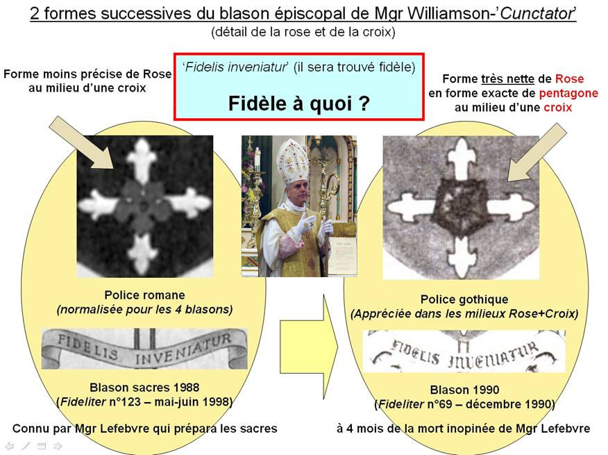 Anexamos para el conocimiento de nuestros lectores dos fotografías correspondientes al Blasón Episcopal de Mons. Williamson, en donde aparece el símbolo rosacruciano.