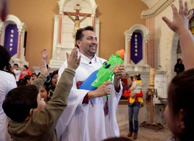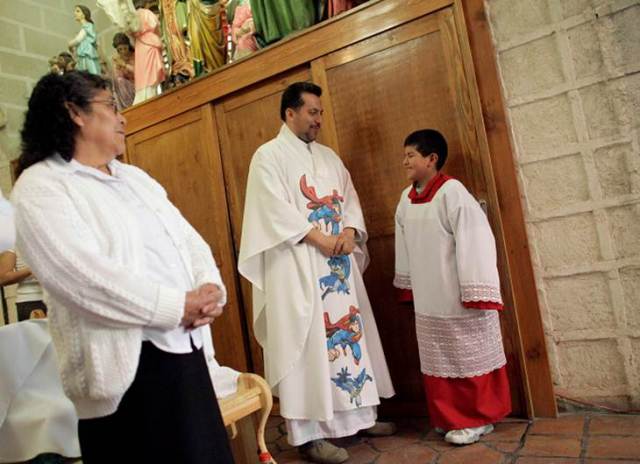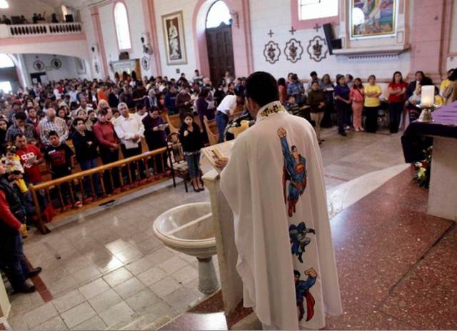 “El sacerdote ha atraído a niños y mayores a las misas del domingo. Dice que eligió a Batman y Superman porque sus historias hablan de actitudes de lucha y esfuerzo y vencer temores” (El Universal) Foto: Reuters.