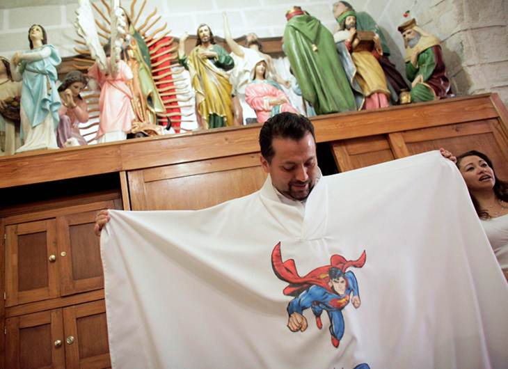 “El sacerdote ha atraído a niños y mayores a las misas del domingo. Dice que eligió a Batman y Superman porque sus historias hablan de actitudes de lucha y esfuerzo y vencer temores” (El Universal) Foto: Reuters.