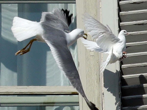 Recordemos que antes de la dimisión de Ratzinger una gaviota atacó a las palomas con las que Benedicto XVi pretendía homenajear al «holocausto»… Desde allí este animal se convirtió para muchos, y desde aquel momento, en un símbolo de la lucha contra la judeofilia extrema de la iglesia conciliar.