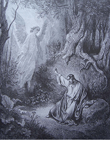 Y cayó en agonía y su oración se hizo más apretada. Y le vino un sudor como de gotas de sangre que chorreaba hasta el suelo. Y apareció en Ángel del cielo, confortándole.