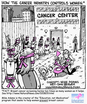 Ni es suya cualquiera discusión de la estafa total de los «lazos rosados» de la industria de curación del cáncer que está centrada en dar cáncer a las mujeres por medio de mamografías gratis.