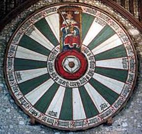 Más: Esa rosa-pentáculo que parece doble, (con otra en el centro), es exactamente la misma que aparece en el escudo Tudor, reflejado en la Mesa Redonda iniciática de Winchester.
