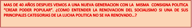 En esto consiste entonces el proceso de renovación del socialismo: Como no hay causas externas que determinen una imposición o sujeción a algo superior para el hombre; y la fuente de las ideas y del conocimiento es «solo» empírico, todo error será siempre una acción interna calificada como «desviación» producto siempre de una lectura «subjetiva» (objetiva para ellos) de la realidad. Y cada corrección del rumbo revolucionario no se contradice nunca con el estadio anterior superado, pues es un aprendizaje que se suma al cumulo de experiencias que dan cuenta de una etapa histórica (experiencia) superada en cuanto al «intento UTIL de alcanzar al socialismo». Cada «revolución» es reconocible como heredera de la anterior por sus características principales. Lo que se experimentó en una época no se deja atrás por una modificación de la naturaleza u objetivos del socialismo. Tampoco porque haya sido falso. Se deja atrás porque dejo de ser bueno y verdadero como «forma» para la «revolución» en una determinada época. No porque su esencia sea falsa o errónea. Y Lenin así lo señala: «el carácter de la época determina el carácter de la revolución». Nacen de esta manera nuevas formas, acciones y organismos revolucionarios Desarrollemos estas afirmaciones con las pruebas necesarias que «demuestren».