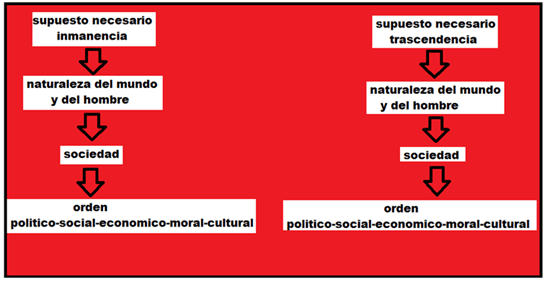 Todo esto nos lleva a establecer algunos vínculos ideológicos como los que hemos señalado y que no trataremos en profundidad aquí pero que hemos mencionado como ejemplos para una mayor comprensión de los argumentos que estamos desarrollando. Lo que demos señalar y enfatizar es que estos principios (supuestos necesarios): inmanencia y trascendencia, son en última instancia causas justificadoras y ordenadoras de la vida para quienes los asumen como una «verdad». Y