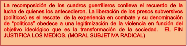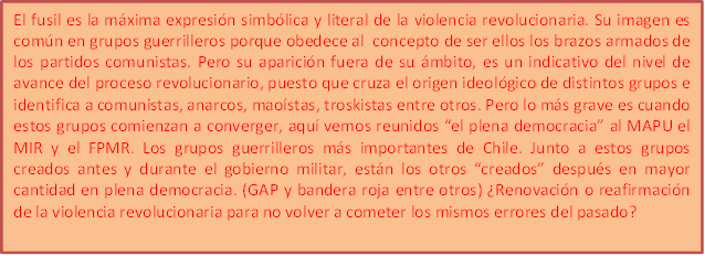 La exposicion de todas estas imágenes que se podrian multiplicar por miles en toda Hispanoamerica, pretenden demostrar en primer lugar, una constante en las acciones revolucionarias. Y en segundo lugar, confirmar que las principales categorías «clásicas» doctrinarias e ideológicas del comunismo siguen plenamente vigentes. Estan acciones y categorías son: revolución, revolución permanente, poder popular, guerra popular, lucha de clases, subversión y guerrilla urbana.