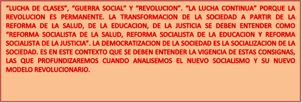 No obstante este «sin vuelta atrás» en venezuela es ya una tarea de «Estado» del «Estado socialista». De hecho el legado politico de Chavez está en su «programa de la patria» donde señala: «traspasar las barreras del no retorno»; «radical supresion de la lógica del capital» y «pulverizar completamente la forma del Estado burgues». Por su parte, en ecuador el Presidente socialista Correa señalo durante la campaña por su reelección: «vamos a derrotar en las urnas a los conspiradores para hacer irreversible la revolucion ciudadana»… «apoyenme para seguir cambiando al país«.. «necesito un mayoria contundente para hacer de esa revolución UN PROCESO IRREVERSIBLE«.