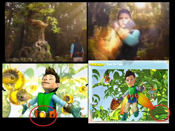 En la serie señalada, el niño sale de su hogar se interna en el bosque y frente a un árbol (paganismo) realiza su magia que se llama «magia mundial». Cuando la magia se activa, se enciende un círculo amarillo en su cinturón. El círculo es el requisito previo para cualquier ritual satánico. Es la figura central. Dentro de ella se colocan todas las otras imágenes o elementos del ritual. El color amarillo, además, es el color del infierno para la demonología. Posteriormente él se transforma en un dibujo y se sumerge en la naturaleza (paganismo) en donde todas las figuras, incluido el vestuario del niño; están compuestas por diseños con espirales.