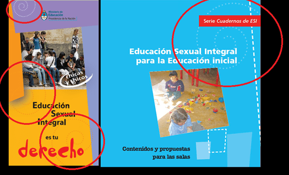 Segunda lectura: categorías de la demonología. Todos los textos oficiales de sexualidad del ministerio de educación de Argentina están cruzados por el numero 6 y la espiral.
