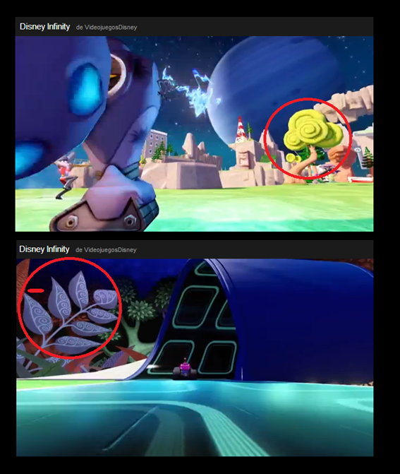 En la portada de la izquierda, al igual que en la (segunda imagen) siguiente del juego de Disney infinity, se repite la secuencia de las «tres espirales»: tres espirales aludiendo a 3 seis. Paganismo unido a la demonología.
