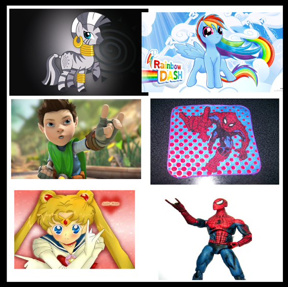 Esto lo podemos ver claramente en las siguientes series. Por ejemplo en Tri Fu Tom, una serie para niños, la estética de los dibujos integra a las espirales. En My Litle Pony, una serie que es para niñas; ocurre lo mismo, toda la estética termina en espiral. Incluso, la hechicera zecora tiene como distintivo una espiral. En la serie Sailor Moon, las categorías demonológicas se expresan en la luna (matriarcado-paganismo) los cuernos de la luna (satanismo) y el gesto de las manos (cuernos). El hombre araña ha cambiado el gesto de las manos para lanzar la telaraña, por la que simboliza los cuernos del demonio.