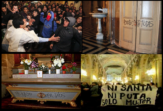 IRRUPCION EN UNA SANTA MISA EN LA CATEDRAL DE SANTIAGO, CHILE POR UN GRUPO DE ABORTISTAS.