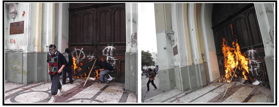 Intento de quema de la iglesia de la Gratitud nacional en chile, durante una marcha estudiantil año 2012.
