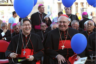 De la peregrinación no tengo más datos. Sólo lo poco que he visto. Tengo la impresión de que hubo menos asistentes que el año pasado, con ciertas diferencias muy apreciables. Por ejemplo, el celebrante en San Pedro, en el Altar de la Cátedra, ha sido el Cardenal Darío Castrillón, emérito; el año pasado fue el Cardenal Antonio Cañizares, prefecto de Congregación de Culto y Sacramentos. Un bajón notable. A parte de Mons. Guido Pozzo, el único prelado destacado ha sido Mons. Fernando Rifán, que celebró la Misa de Cristo Rey en Stª María sopra Minerva. También he leído que Mons. Fisichella (supongo que de oficio) les acompañó durante el Via-Crucis por el Palatino y en la adoración al Santísimo celebrada en la Chiesa Nuova.