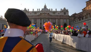 En Piazza San Pietro, los Cardenales jugaban con globos de gas que se soltaban luego y subían, subían, subían, ligeros, volanderos, hasta que se perdían en el azul del cielo romano.