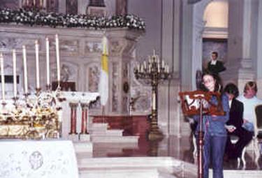 Tres católicos y un judio leyeron un acontecimiento vivido por un niño judio y SSJuan Pablo II A continuación el Coro SHARIM de la Sociedad Hebraica Argentina interpretó el Avini Malkeinu de Max Janowsky |