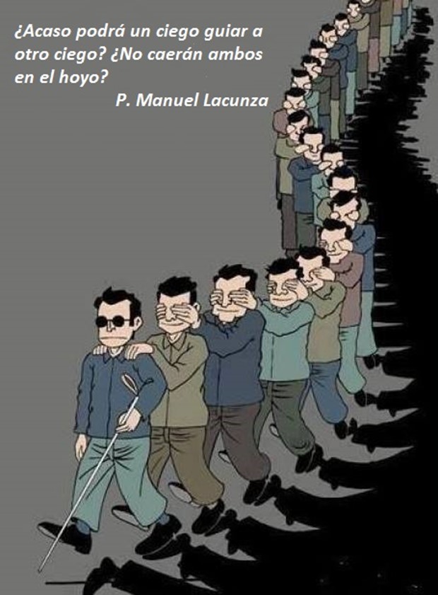 «… fue como una consecuencia necesaria que todo se errase, y que el pueblo ciego, conducido por otro ciego, que era el Sacerdocio, cayese junto con él en el precipicio.» (La Venida del Mesías en Gloria y Majestad, Padre Manuel Lacunza, Discurso Preliminar, págs. 20-21).