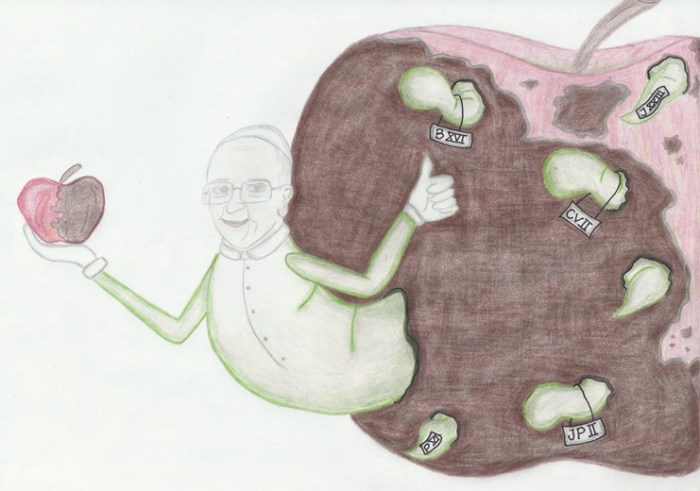 Es decir: Decimejorge forma parte de esa podredumbre conciliar, que concibió el modernismo, gestó y parió el Concilio Vaticano de Juan XIII y Pablo VI, y fue desarrollado por Juan Pablo II y Benedicto XVI…, siendo Francisco un gusano de la mejor estirpe y digno representante de dicha putrefacción…